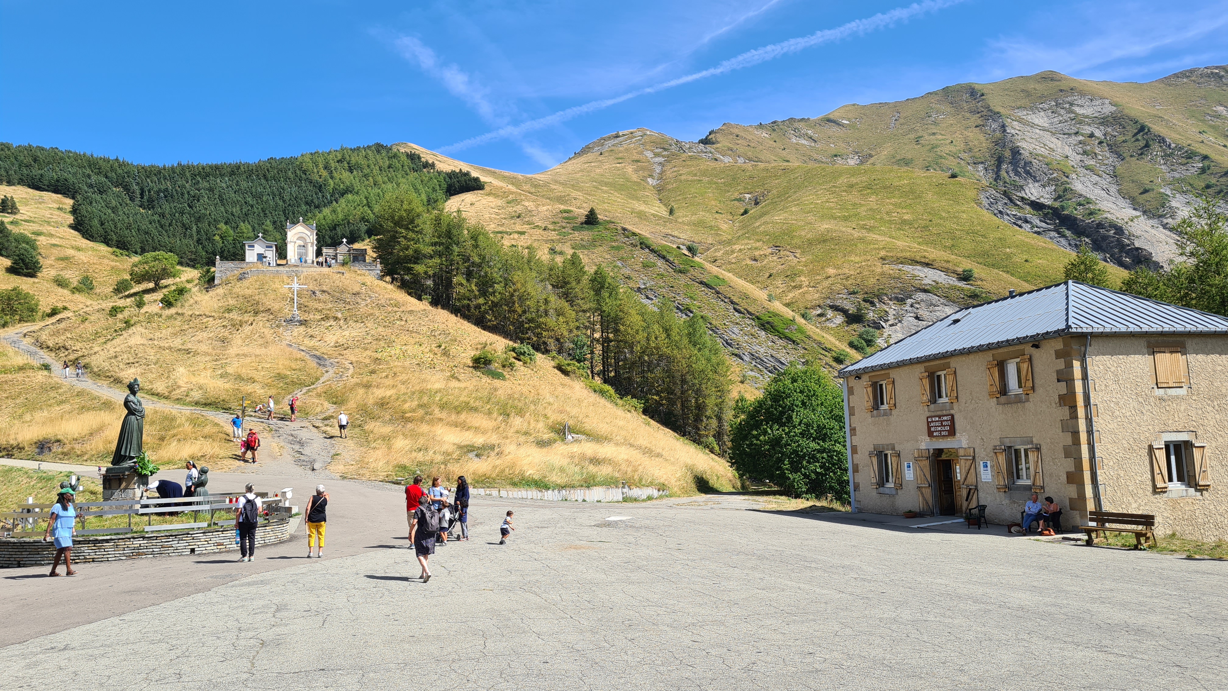 Le sanctuaire a été construit où serai apparue la vierge Marie en 1846 a deux jeunes bergers....Maximin et Mélanie . On y accède par une route magnifique...des paysages somptueux... L'air est frais à 1800m mais le soleil brule !